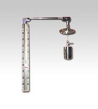 液位計是根據(jù)力平衡原理設(shè)計的。當(dāng)液位處于某一高度時浮標(biāo)重量為W,重錘針重量為W1,浮標(biāo)浸在液本中所受到的浮力為F,系統(tǒng)摩擦為(。在平衡狀態(tài)下:W-F-W1-f=0)當(dāng)液位上升時,浮力F增大,W、W1、和f均不變,上式平衡破壞,垂指針下滑。直到F力減少到原來值,新的平衡才建立。如F力一直在增大,即液位一直在上長,指針一直下滑。反之,液位下降,則重錘指針上升,以此來指示液位的高度。