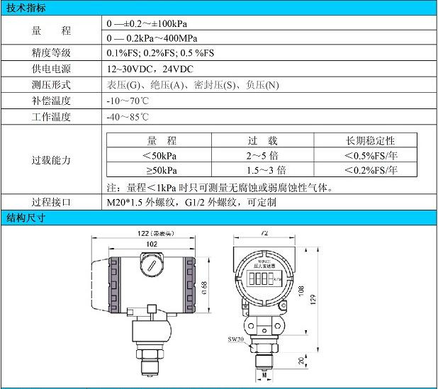 WP401A壓力變送器,進(jìn)Kou芯片組裝,體現(xiàn)高檔壓力變送器工藝。