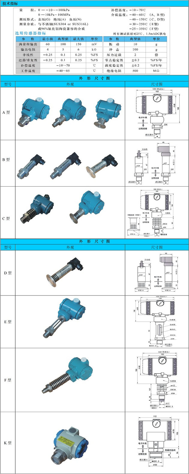 wp435型無腔壓力變送器選用進Kou高精度、高穩(wěn)定性防的芯片組裝,采用激光焊接工藝將芯片與不銹鋼外殼焊接在一起,無壓力腔體,適用于各種易堵塞、要求保持衛(wèi)生、便于清洗或無菌環(huán)境的壓力測量和控制。該產品具有較高的工作頻率,適于動態(tài)測量。